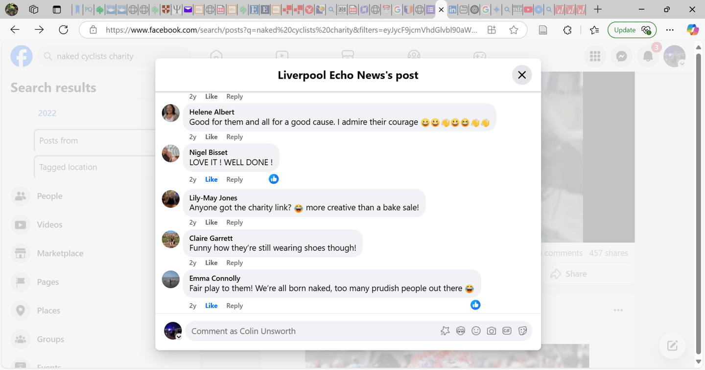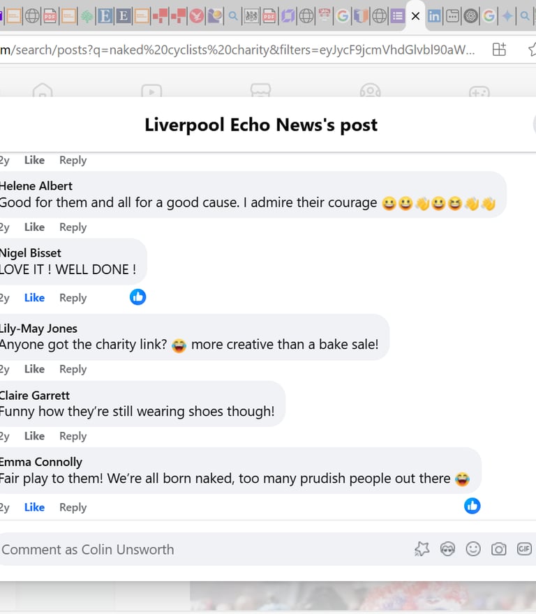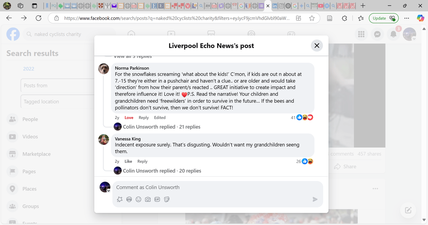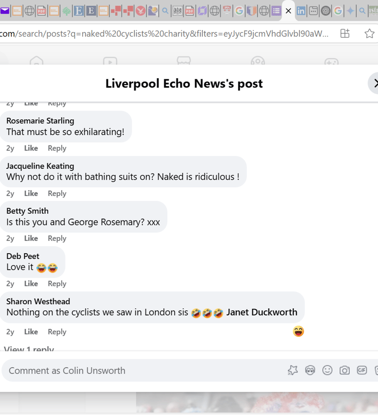 The two main risks of the mission were that the entertainment value of the ride would drown out the message, and that seeing naked people in public would affect negative feelings. There was considerable discussion online, but the set of screenshots from the Liverpool Echo Facebook page (Fig. 4 & 5) summarise the extent to which members of the public were offended or disgusted. The first comments on both screenshots and the last one on the first screenshot (Fig 4), reveal negativity regarding the nakedness and focus on the idea children need to be protected from the perceived harms of nudity. Again, this reiterates engrained societal stress regarding passive nudity.
